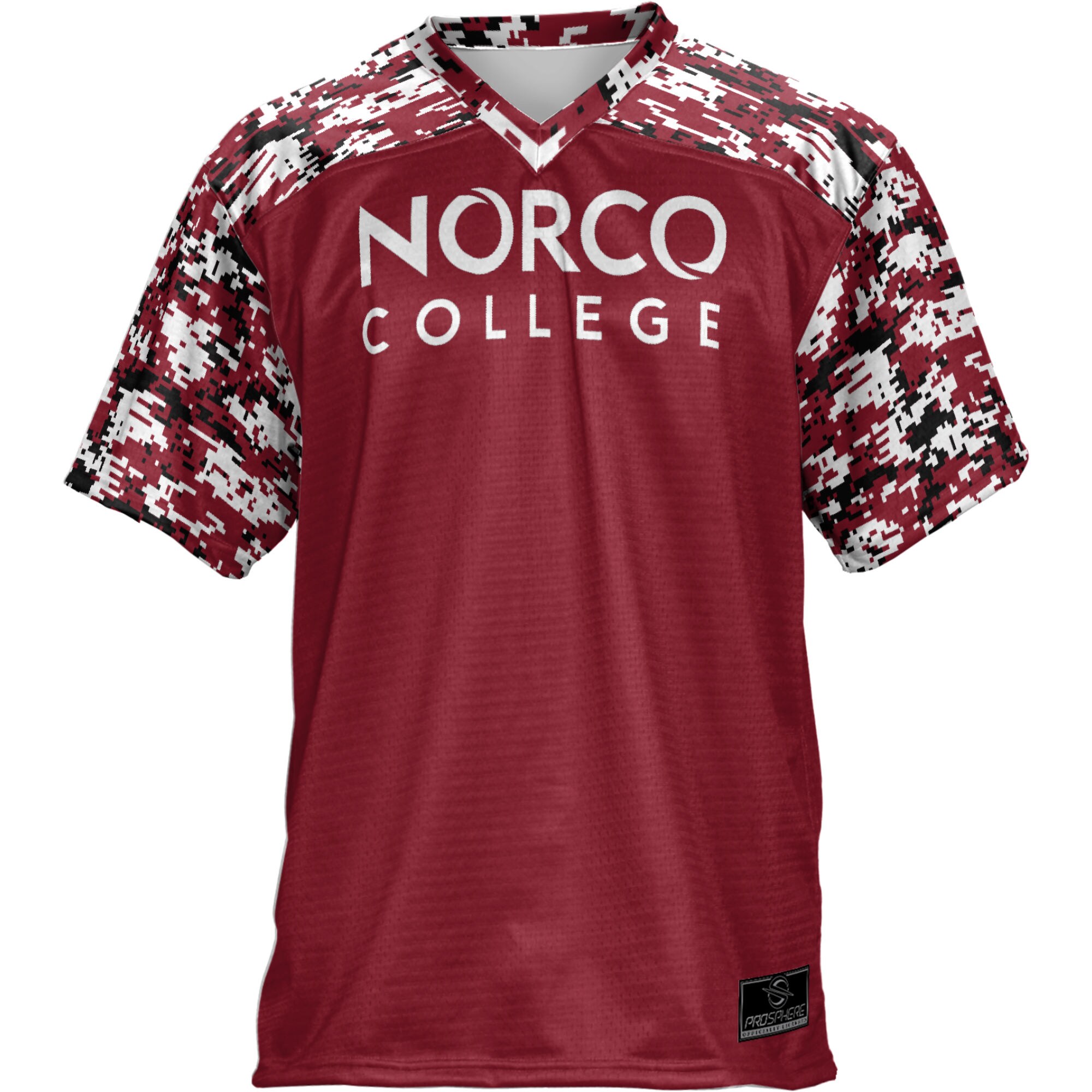 Norco College Mustangs Prosphere Youth Camo Football Jersey – Red